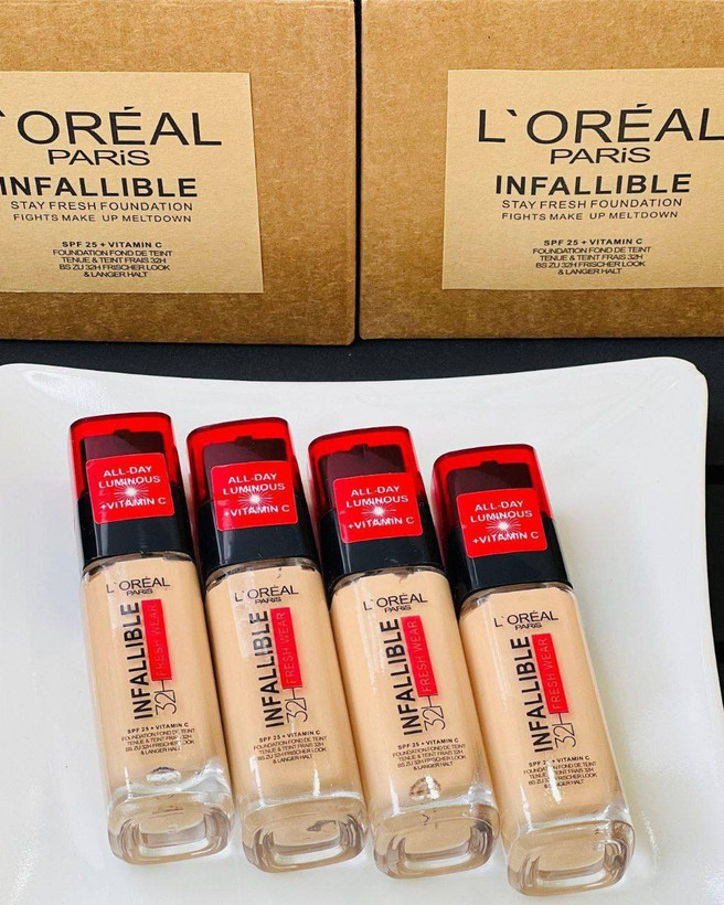 پوستی بینقص از صبح تا شب! کرم پودر شیشهای L’Oréal Infallible با پوشانندگی بالا، ماندگاری ۲۴ ساعته و بافت مخملی، پوستتو صاف، یکدست و مات میکنه بدون اینکه حس سنگینی داشته باشی! ضد تعریق و مقاوم در برابر رطوبت دارای SPF برای محافظت در برابر آفتاب مناسب انواع پوست (حتی چرب و مختلط)